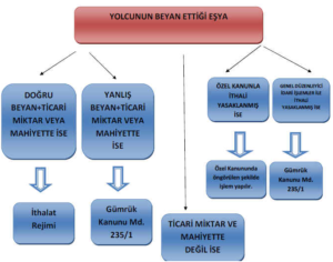 Uçaktan indikten sonra beyana tabi eşyanın olmasına (ticari miktar ve mahiyette) rağmen yeşil kapıdan ilerlenmesi ve bunun tespit edilmesi durumunda Kaçakçılık Kanunu uyarınca işlem tesis edilir. Bunun yanında Gümrük Kanunu’nun 235. Maddesi uyarınca eşyaya ait gümrük vergilerinin iki katı alınır. Ancak Kaçakçılık hükümleri uyarınca işlem tesis edildiği için eşya teslim edilmez.