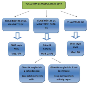 Yine yeşil kapıdan geçilmesi ve beyana tabi eşyanın tespit edilmesi durumunda Gümrük Kanunu’nun 235. Maddesi uyarınca eşyaya ait gümrük vergilerinin iki katı alınır ve eşya teslim edilir. (Ticari miktar ve mahiyette değilse) Gümrük vergileri ödenmediği takdirde, eşya gümrüğe terk edilmiş sayılır.